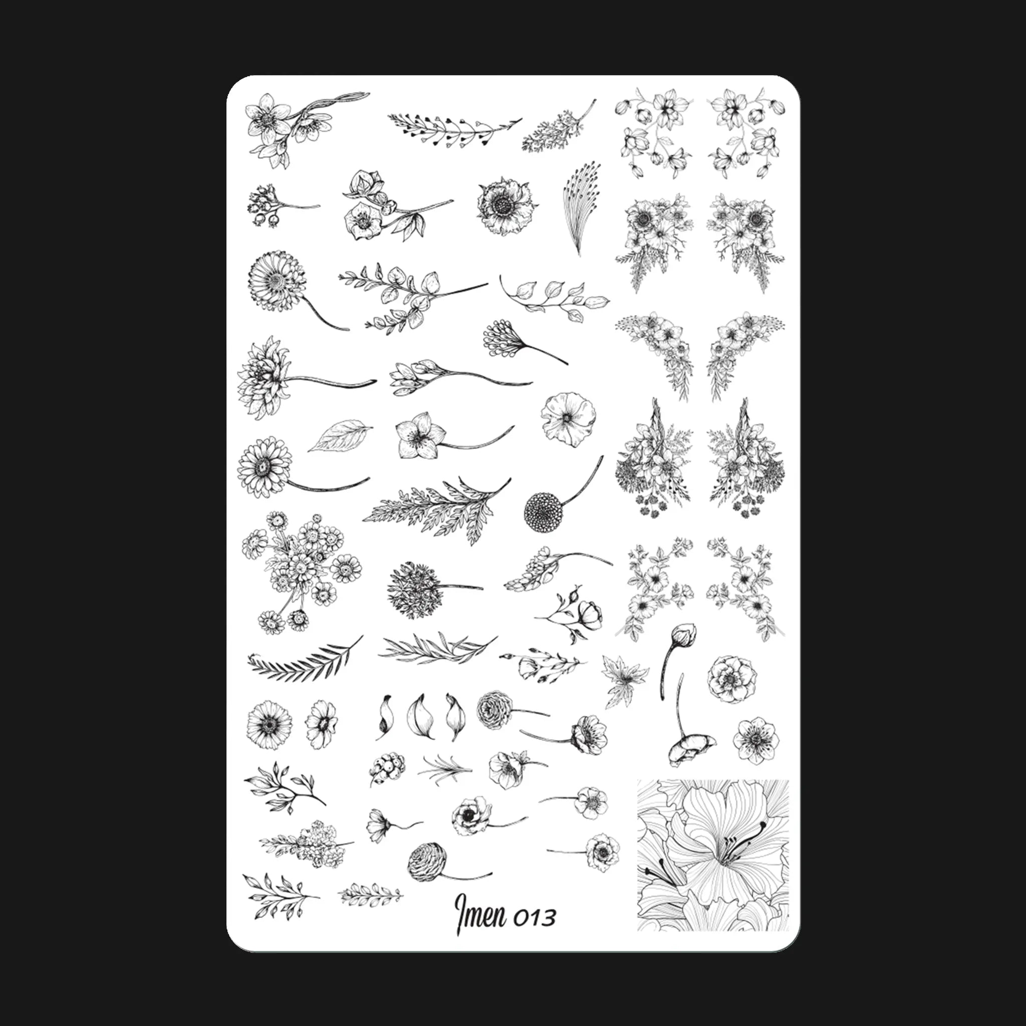 Product description: Pre-cut stamping plates with different designs Size: 145 x 95 mm Without plastic...